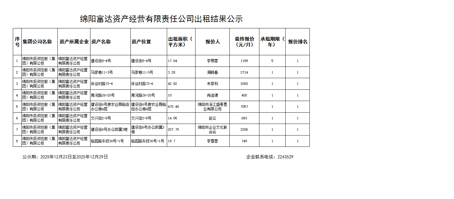 出租结果公示